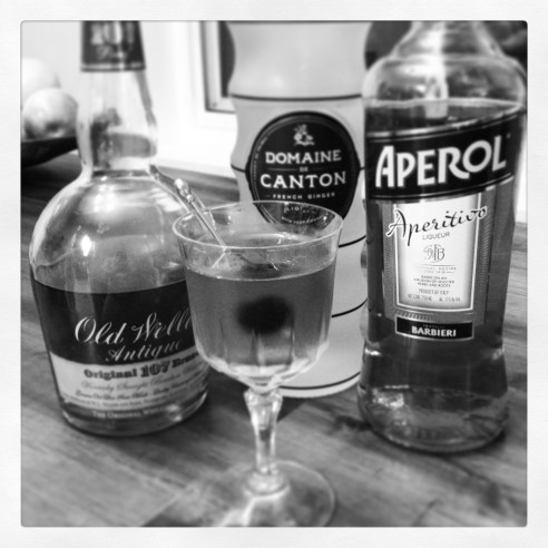 The Canton was too strong in the initial flavor and the Aperol in the aftertaste with Bourbon dominating the nose, however, adding a hearty dose of orange bitters brought everything in line and the result was quite good.