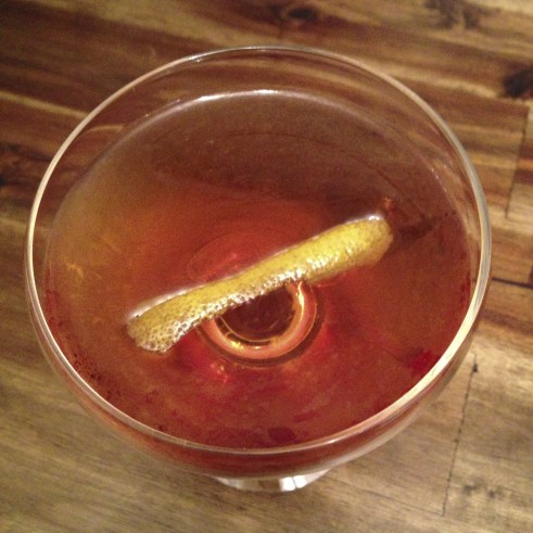 Fun with Irish whiskey. I enjoyed my variation, Maureen O’Hara and also enjoy Cynar with Domaine de Canton. It only seemed natural to combine the two. Scents of honey, lemon, leather and ginger great the nose. A complex interplay of herbs, whiskey sugar and ginger. The finish is light with caramel and citrus notes.