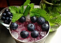Ingredients: 2.5oz Bourbon .75 Maraschino .25oz St. Germain 1brspn Creme Yvette 2 dashes Peach Bitters 12 Blueberries 10 Mint Leaves 2 Mint Sprigs Blueberries (garnish) Instructions:…