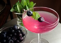 Ingredients: 2oz Gin .5oz Maraschino .5oz St. Germain 1 brspn Creme Yvette 4 Mint Leaves 7 Blueberries Instructions: Add 5 blueberries and 3 mint leaves to…